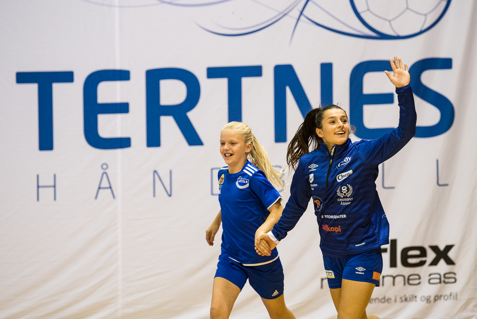 Løper inn med Tertnesjentene ifm. presentasjon av spillerne.