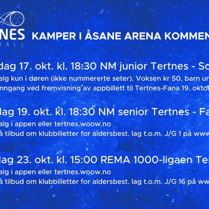 Tre hjemmekamper kommende uke